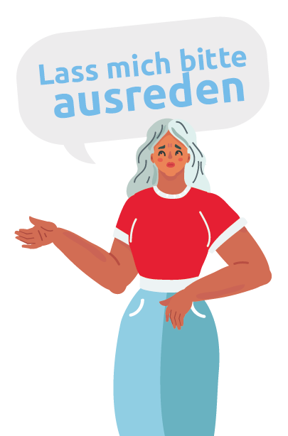 Chyba nikt nie lubi, jak mu się przerywa. Każdy z nas chce być wysłuchany, i to do końca. Zwrotu Lass mich ausreden! możemy użyć, gdy druga strona nie daje nam takiej możliwości. Albo gdy obawiamy się, że nie zostaniemy wysłuchani do końca i z ostrożności przygotowujemy mentalnie naszego rozmówcę na to, by - zanim sam zacznie mówić - posłuchał najpierw, co mamy mu do powiedzenia. Tak więc używając zwrotu Lass mich ausreden! wyznaczamy granicę i wykazujemy się postawą asertywną. W pracy z drugim człowiekiem (w szczególności w opiece nad osobami starszymi!) postawa ta jest o tyle cenna, że broniąc swojej autonomii nie naruszamy zasad kulturalnej komunikacji.